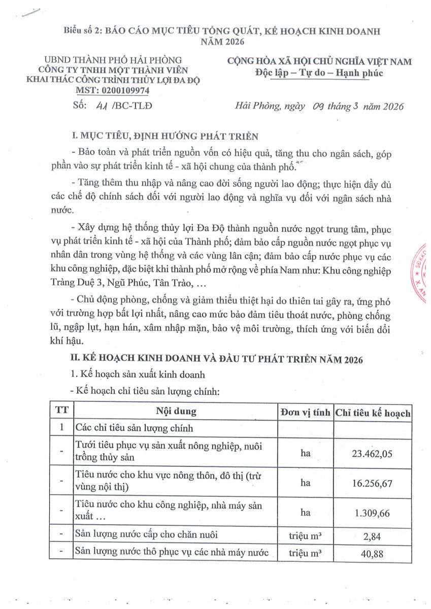 BÁO CÁO MỤC TIÊU TỔNG QUÁT, KẾ HOẠCH KINH DOANH NĂM 2026