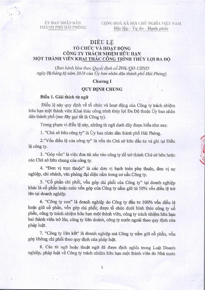 ĐIỀU LỆ TỔ CHỨC VÀ HOẠT ĐỘNG CÔNG TY NĂM 2019