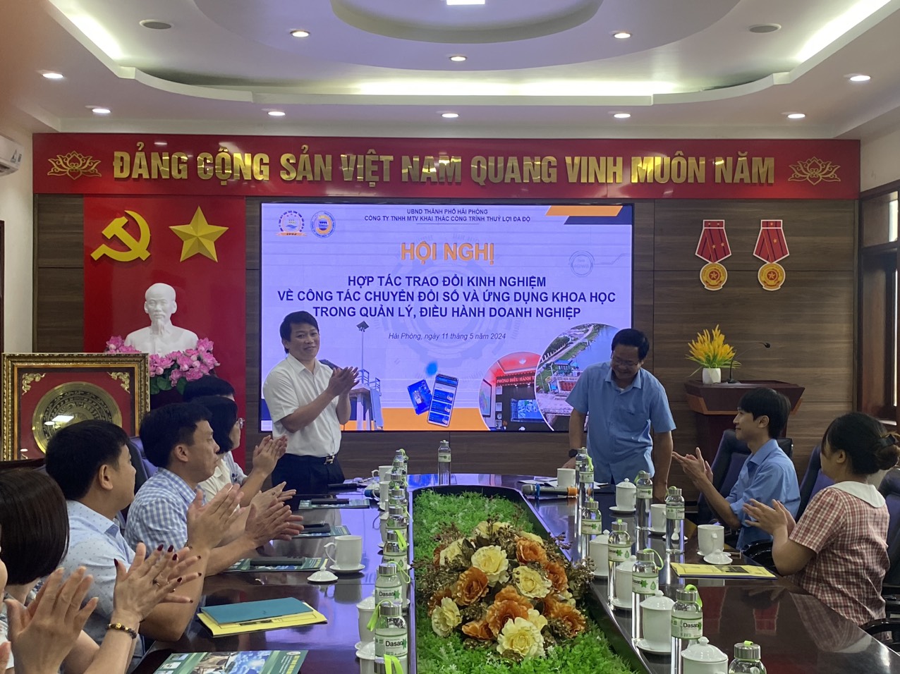Sáng ngày 11/5/2024, Công ty TNHH MTV KTCTTL Đa Độ vinh dự được đón tiếp đoàn công tác Công ty TNHH MTV sông Chu (Thanh Hóa) đến tham quan và làm việc học tập, trao đổi kinh nghiệm việc ứng dụng khoa học công nghệ trong hoạt động sản xuất: Dự án sử dụng thiết bị, năng lượng mặt trời vào việc quản lý, vận hành từ xa hệ thống công trình thủy lợi Đa Độ tại Công ty.