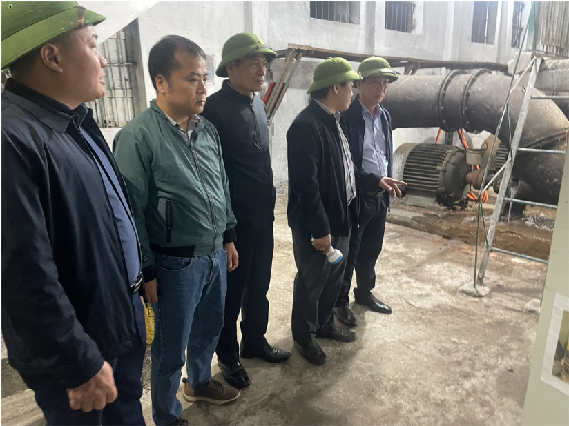 (Đồng chí Đỗ Gia Khánh – Giám đốc Sở nông nghiệp & phát triển nông thôn, cùng các đồng chí Chi cục thủy lợi & phòng chống thiên tai, Công ty cấp nước Hải Phòng, Trưởng phòng nông nghiệp & phát triển nông thôn huyện An Lão, đ/c Ban Lãnh đạo Công ty, Công ty cấp nước Hải Phòng) kiểm tra hệ thống thủy lợi tại TB Quang Hưng và TB Bát Trang